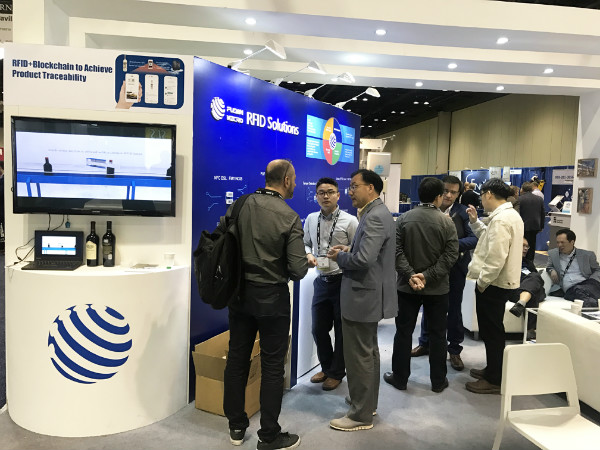 同時(shí),結(jié)合產(chǎn)品的實(shí)際應(yīng)用場(chǎng)景,展臺(tái)也進(jìn)行了案例演示。觀眾對(duì)我司卓越穩(wěn)定的產(chǎn)品性能和綜合應(yīng)用解決方案有了全方位的了解。在跨境商品防偽溯源領(lǐng)域,我司展示了將PUF(物理不可克?。┓纻喂δ艿腞FID標(biāo)簽與區(qū)塊鏈結(jié)合的創(chuàng)新方案。參觀者在現(xiàn)場(chǎng)通過(guò)NFC手機(jī)掃描貼在產(chǎn)自加州納帕谷酒莊的紅酒上的RFID標(biāo)簽,就能接收到該酒的認(rèn)證信息,了解該酒的特點(diǎn)及完整的物流信息。據(jù)悉,這是全球首例將RFID與區(qū)塊鏈結(jié)合應(yīng)用于跨境商品流通的真實(shí)案例。